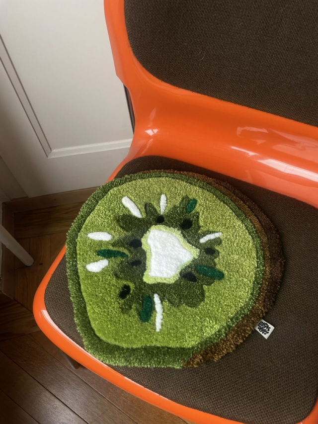 Add a fresh touch to your home with our handmade kiwi rug. Carefully crafted, this unique rug will brighten up any room. The vibrant shades of green, combined with realistic details, faithfully reproduce the fruit.